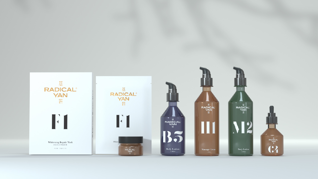 通过品牌名称基妍 RADICAL YAN以字体设计形式呈现标识;借力基妍轻美容互联网概念店的品牌感受。将这种感觉融入到字体设计中,字体设计造型元素源自品牌名称基妍,直观通过实验室的器材表达基妍品牌有强大基础的研究支持,微妙的字体细节处理,力求精准的凸显基妍严谨的韵律感,体现品牌行业属性。