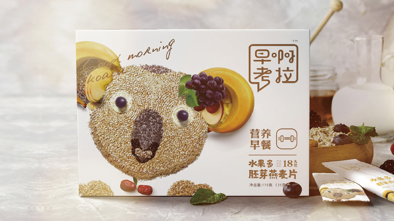 创建了独属于早啊考拉的“食材+IP”的视觉风格; 帮助“早啊考拉”在代餐类市场占据独有的视觉心智。