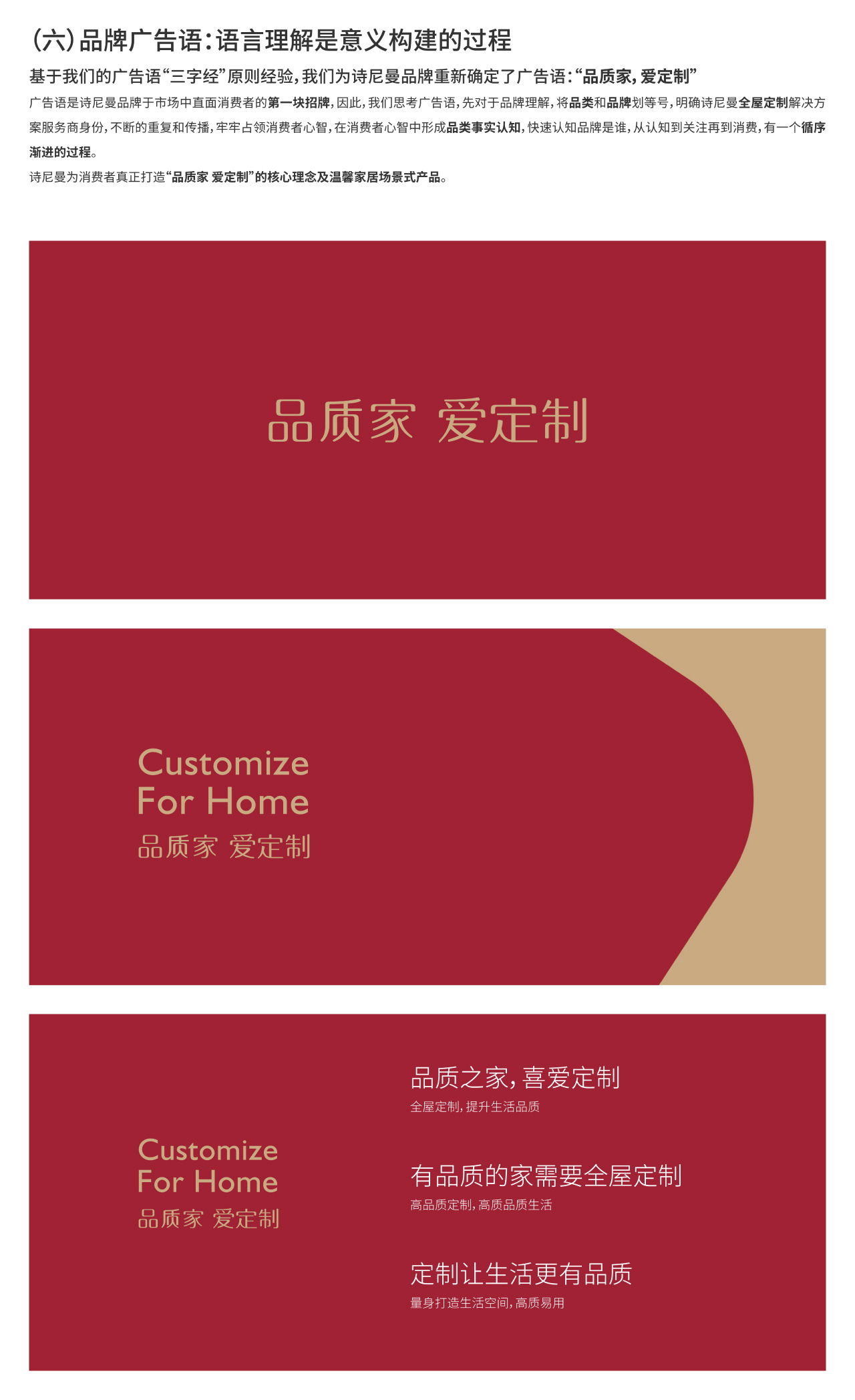 2.改变有广告语“相知 相伴 诗尼曼”的渠道式打法,为消费者真正打造“品质家 爱定制”的核心理念及温馨家居场景式产品,获得极高品牌关注度。